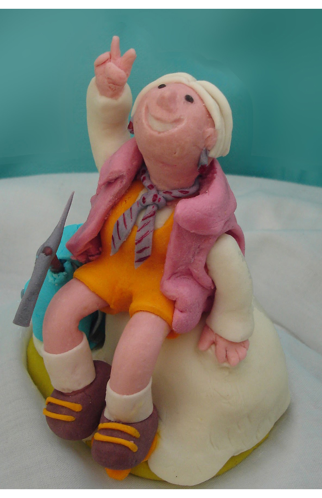La tercera la vaig fer per la mare de la Mireia. L'he representat fent el gest de la victòria, perquè acababa d'assolir un cim, el dels seus 80 anys!